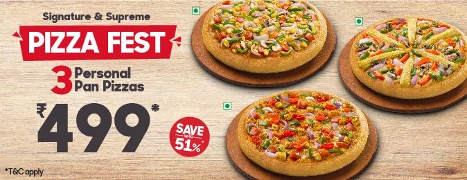 Details: 3 Veg Pizza, Upgrade to Non Veg with only Rs.25