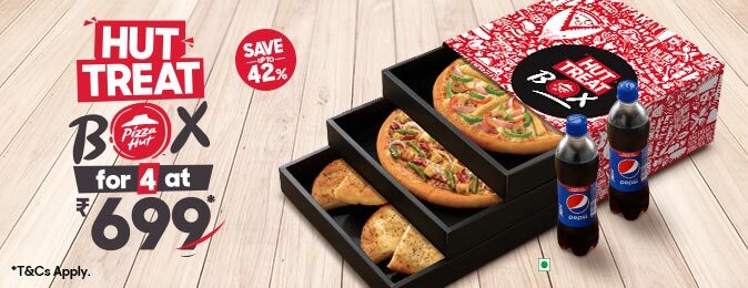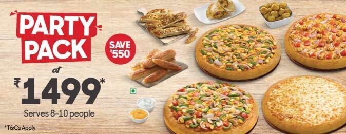 Details: 4 Medium Pizza From Select Range, 2 Garlic Breadstix, 1 Zesty Paneer Pocket, 1 Potato Poppers, 2 Variety of Dips.
